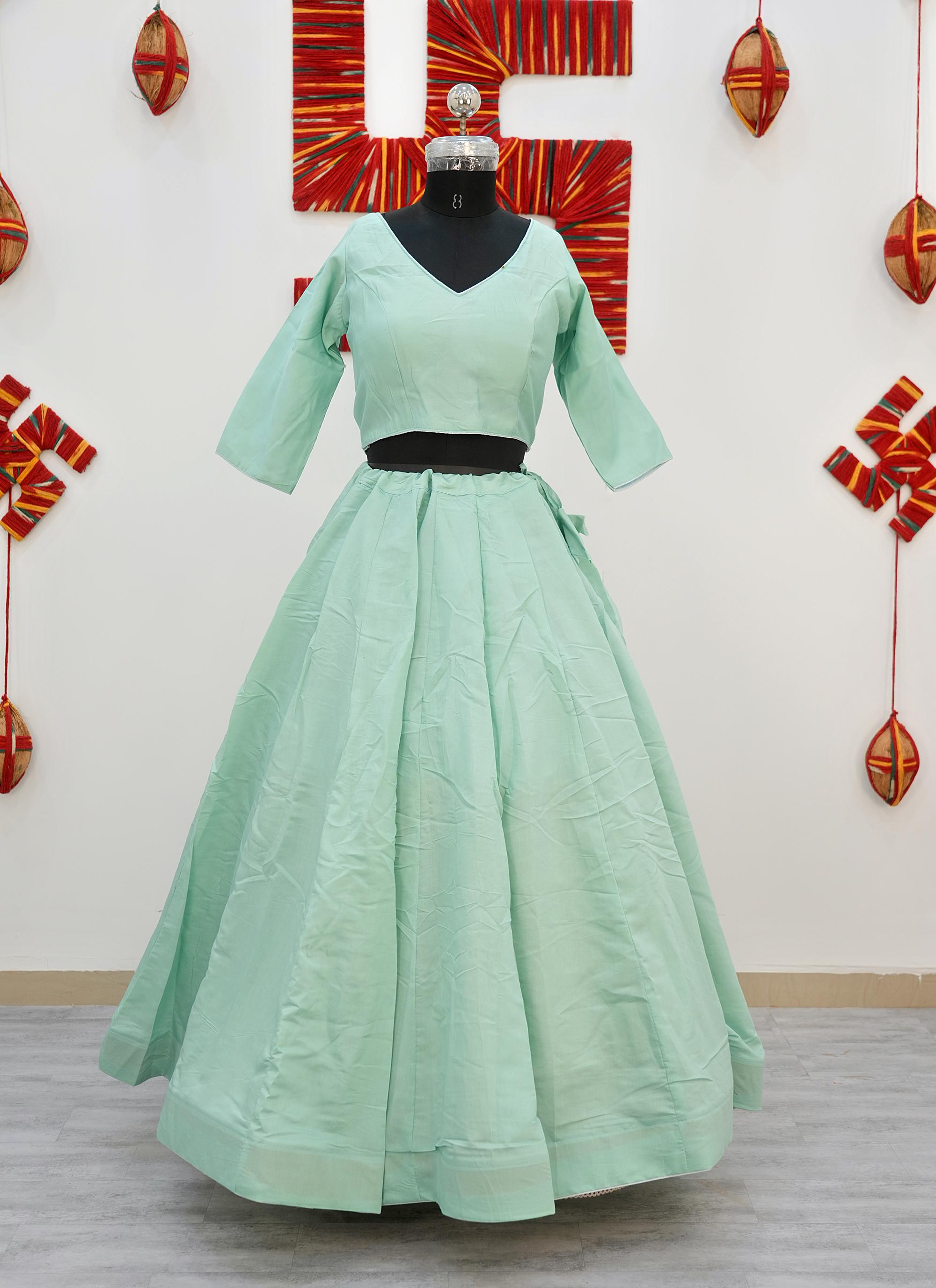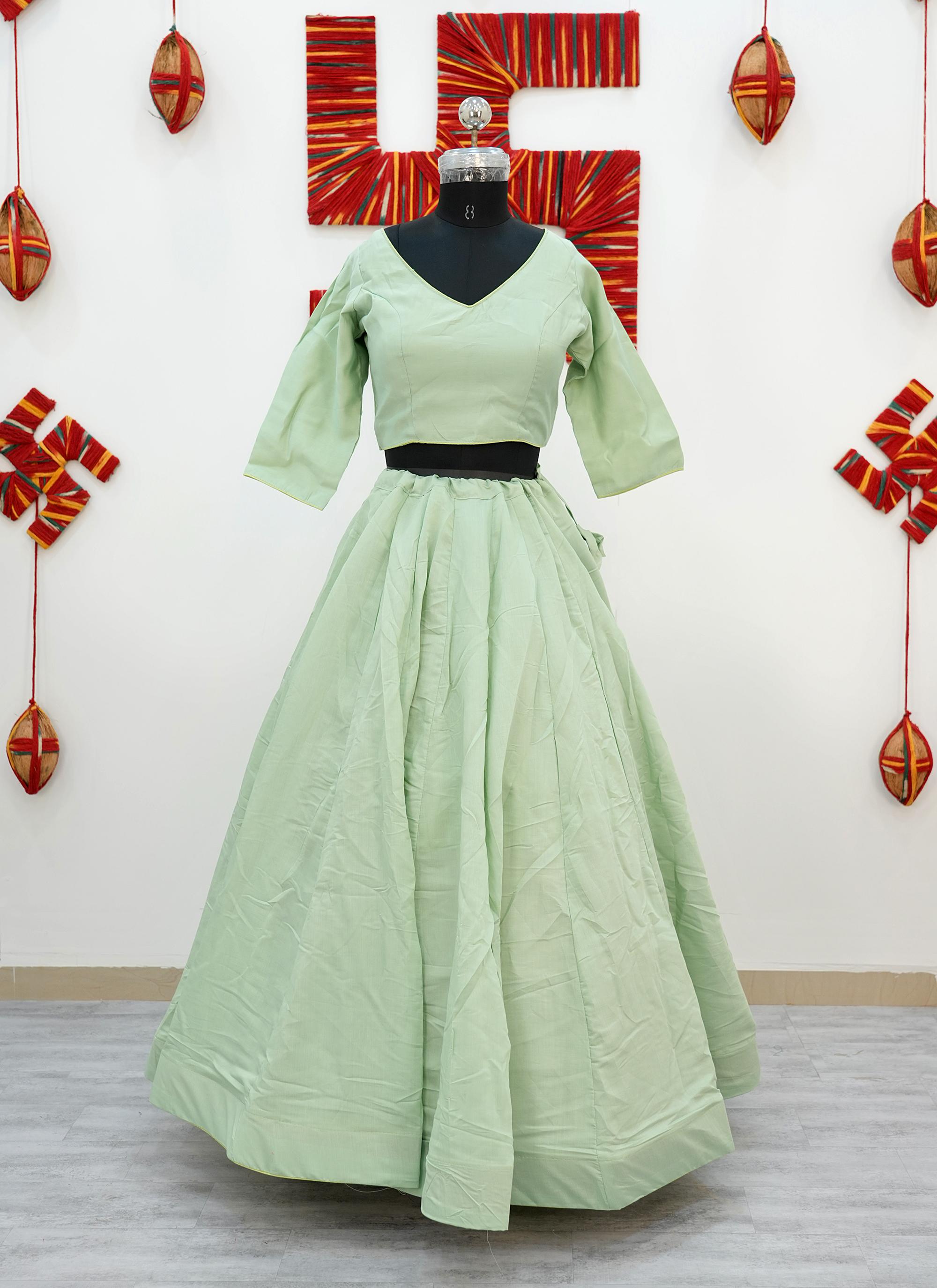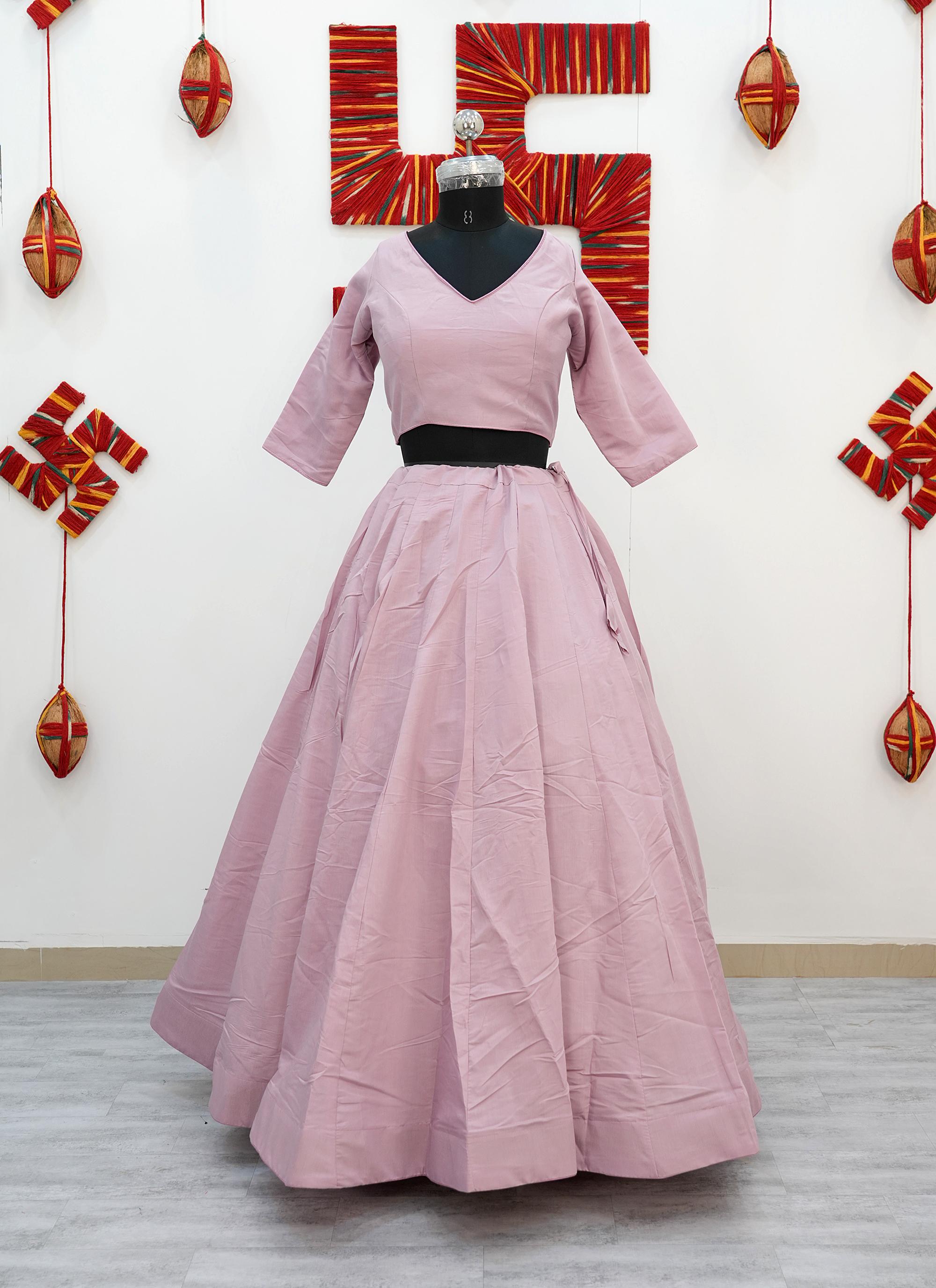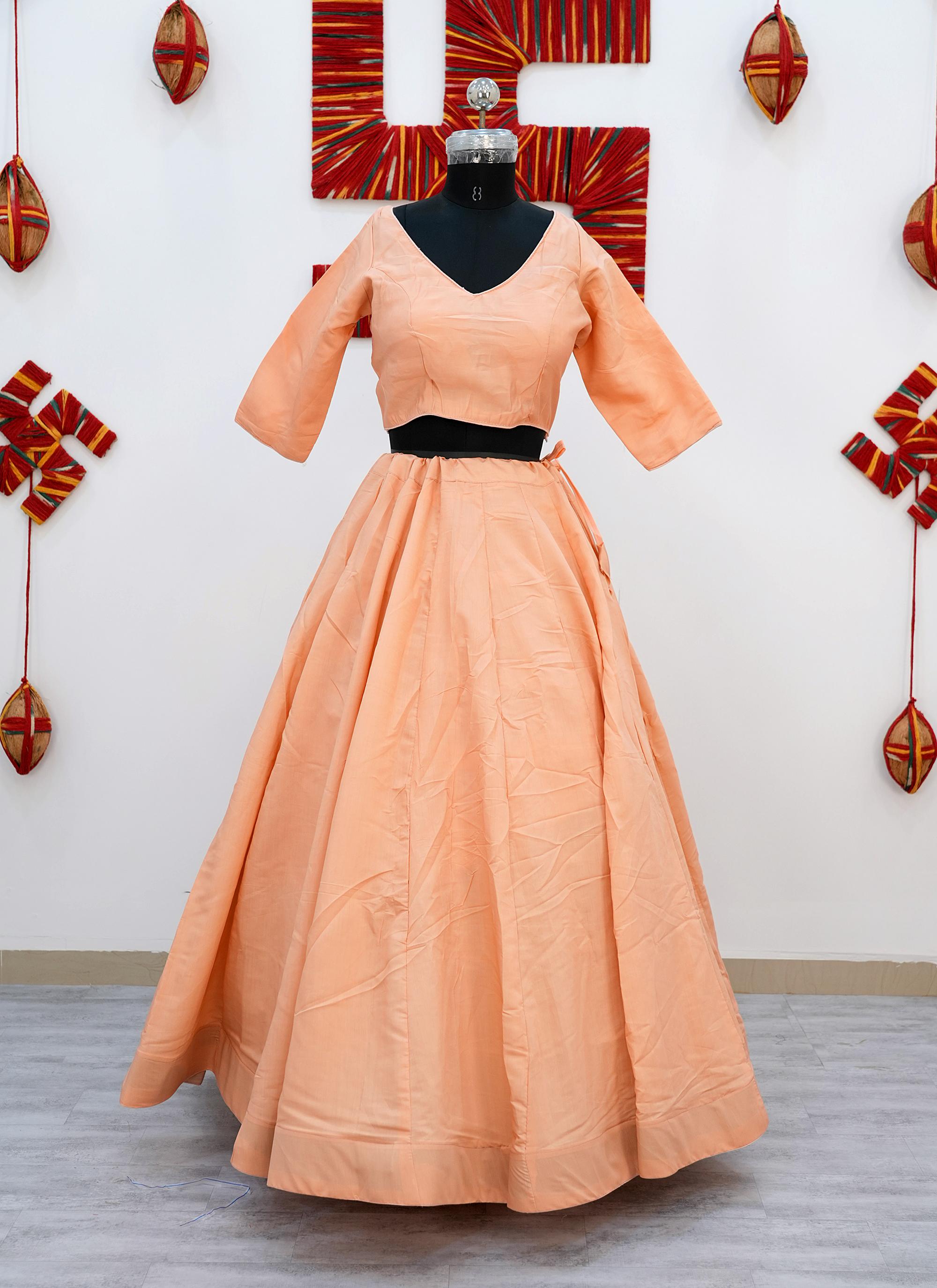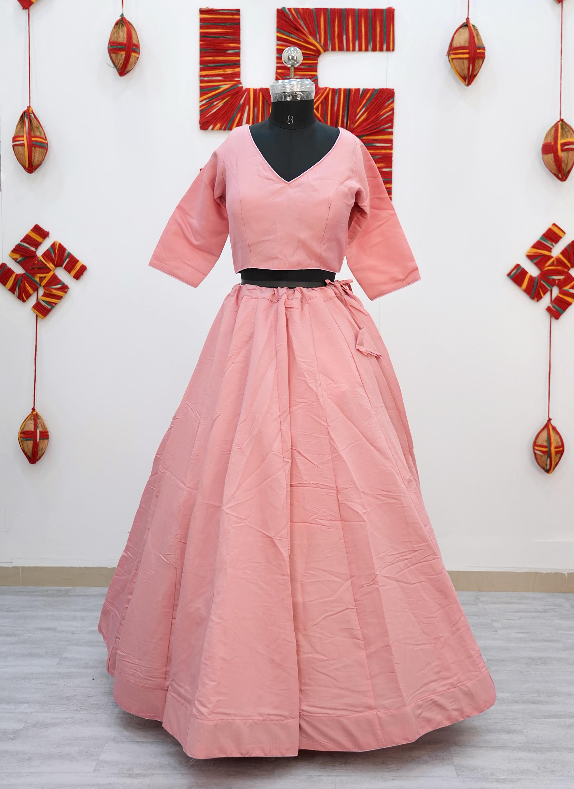 Made from premium Roman Silk fabric, this Plain Chaniya Choli gives a rich, smooth finish with a graceful fall.